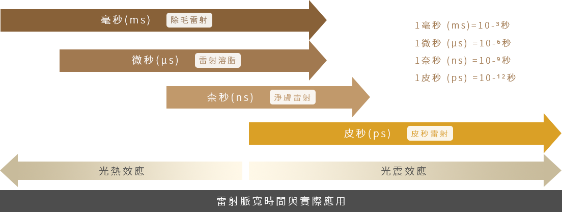 作用機制 | 100%機械衝擊波將黑色素擊碎 | 50%光機械波擊碎黑色素 |